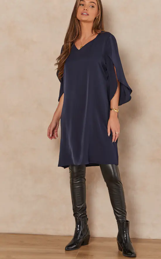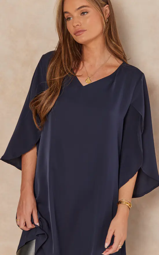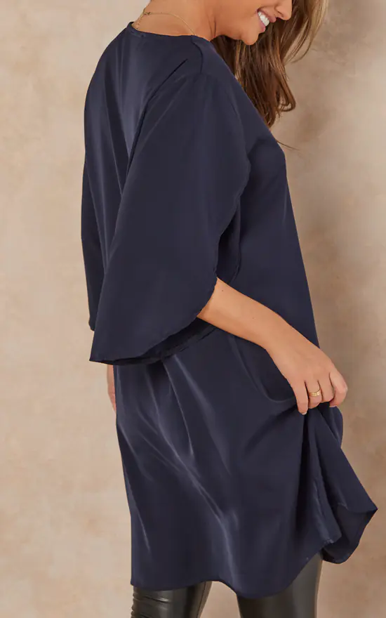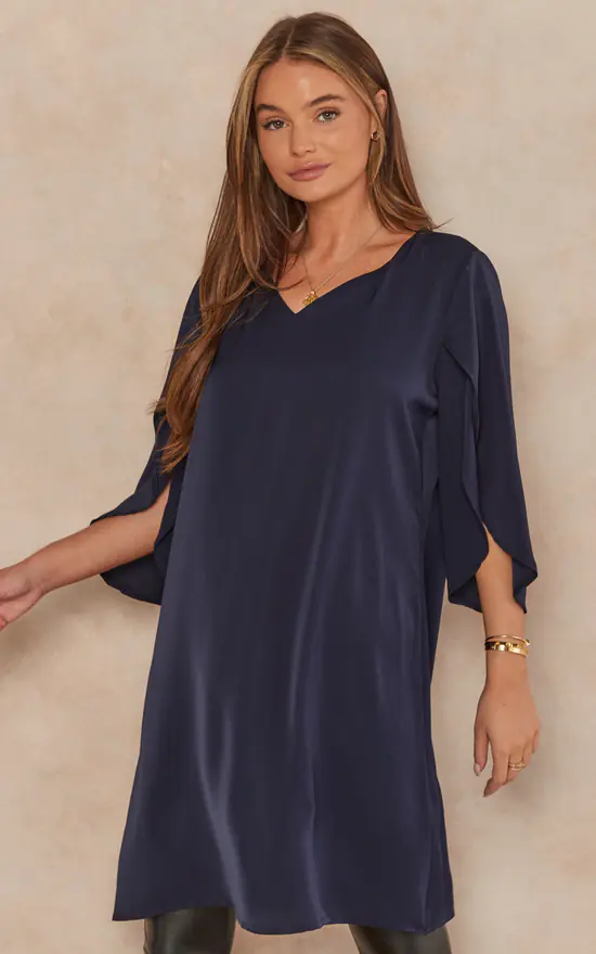 Oversized V Neck Tunic with Split Sleeves in Navy will be your go-to night-out piece for the autumn. Pair with high heels and jeans for the night!