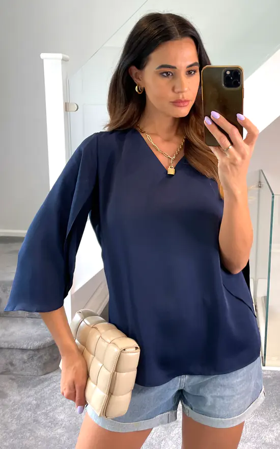 Oversized V Neck Top with Split Sleeves is very fashionable way for throw on and go! Its oversized form makes you comfy at work plus it can be very elegant for after work drinks!