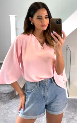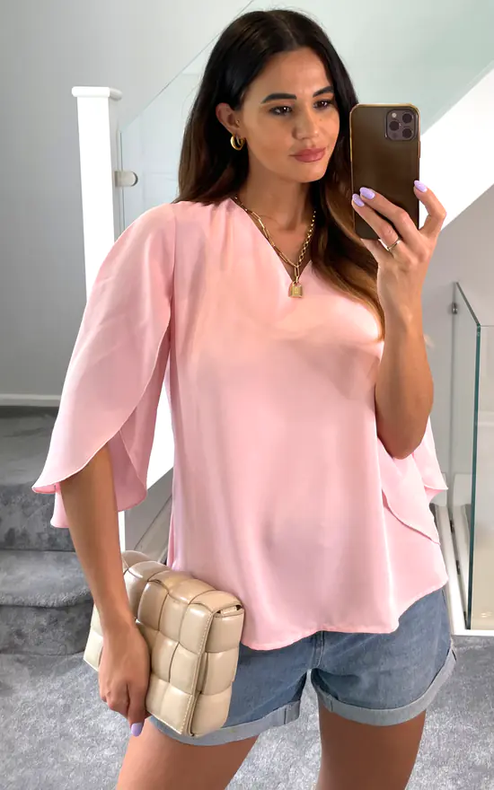 Oversized V Neck Top with Split Sleeves is very fashionable way for throw on and go! Its oversized form makes you comfy at work plus it can be very elegant for after work drinks!