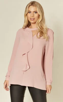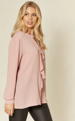 Pink Oversized Top Ruffle Front Relaxed Fit Blouse