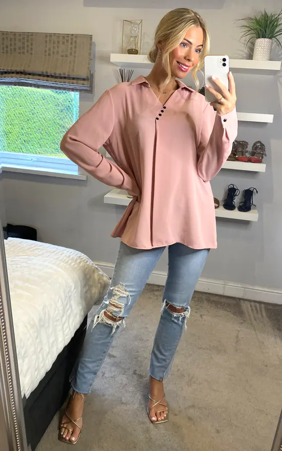 More standout than a classic blouse, thanks to the button details. These details are chic, striking and perfect for the weekend!