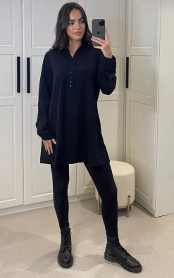 Relaxed Fit Long Sleeves Button Detailed Tunic Top in Black is the perfect piece to wear to any occasion. You’ll love how comfortable this tunic is, and you can style it with anything!