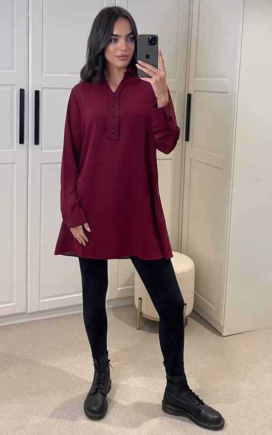 Relaxed Fit Long Sleeves Button Detailed Tunic Top in Burgundy is the perfect piece to wear to any occasion. You’ll love how comfortable this tunic is, and you can style it with anything!
