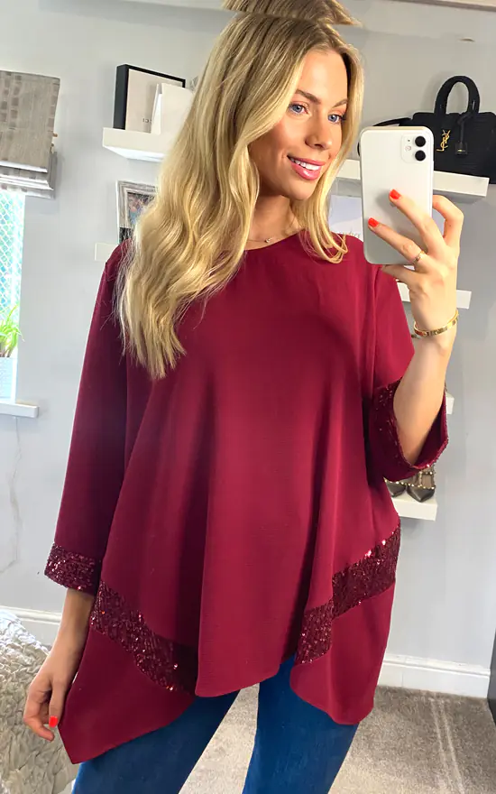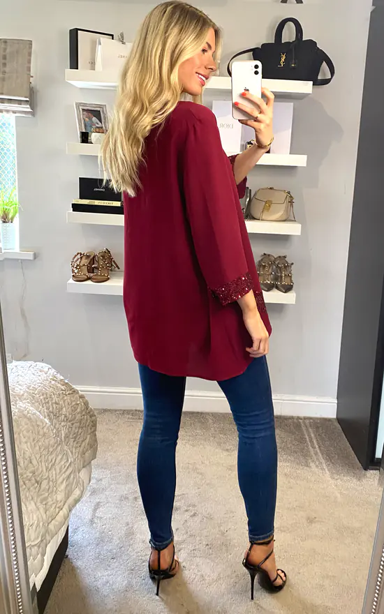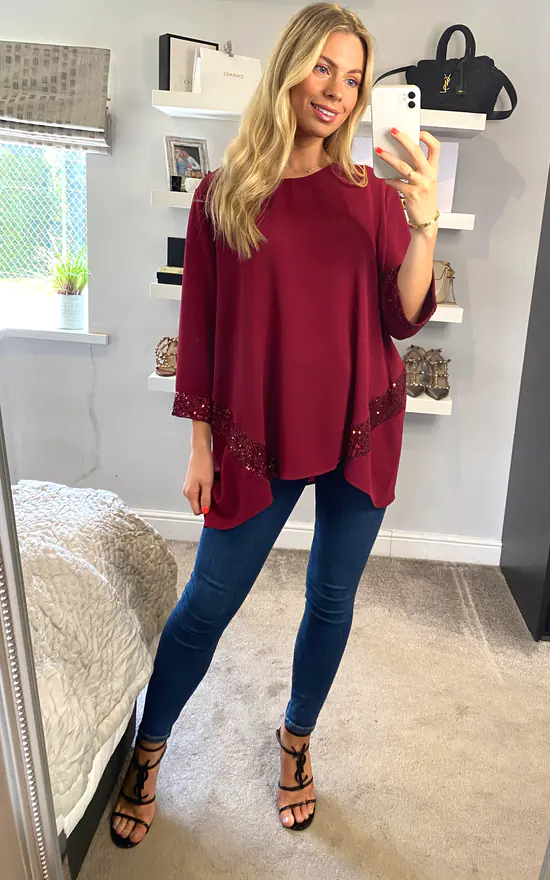 Sequin Detail Oversized Top in Red