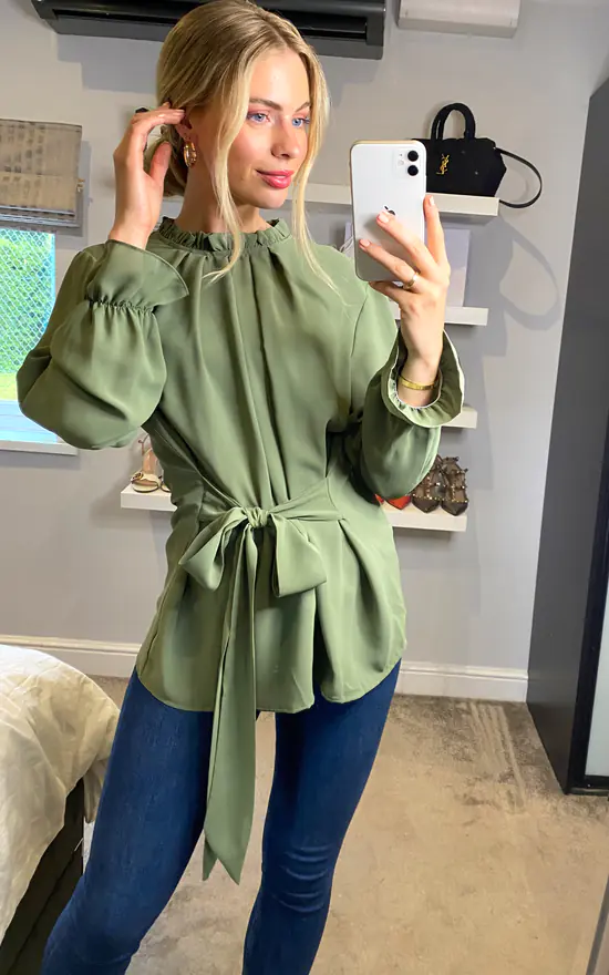 Tie Front Long Sleeve Oversized Tunic is perfect for a Autumn outfit night or day!