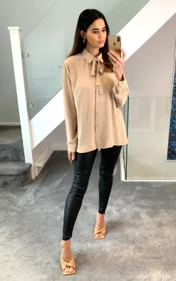 Tie Neck Oversized Top with Long Sleeves In Cream is a lovely comfy oversized fit, it’ll keep you comfortable wherever you go: from lounging on the sofa to going out for coffee.