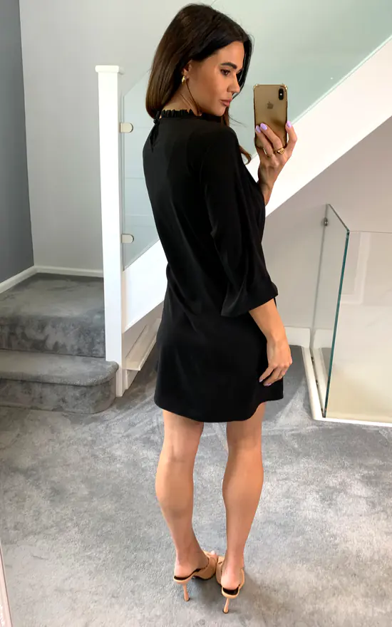 This is a must-have piece that can be combined in several different ways. Thanks to its gorgeous sleeves and ruffle neck detail, it is the perfect Autumn-Winter tunic dress! You can wear it to your family gatherings or date night!
