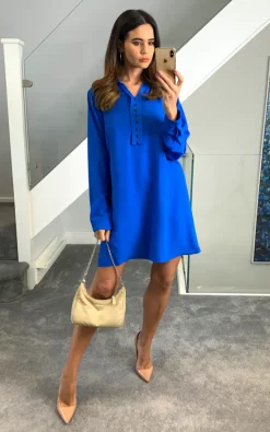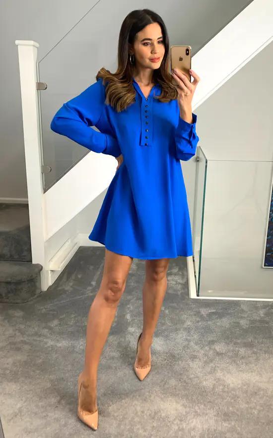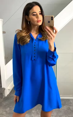 This is a must-have piece for your Autumn/Winter wardrobe. You can feel very comfy with Tunic Shirt with Button Details Blue piece in long days!