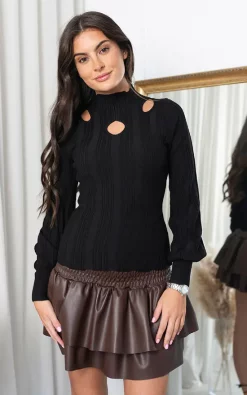 The ikrush/Evelyn Knitted Top with Cut Out Detaisl is the perfect top for any occasion! Made from a soft and comfortable material, it is perfect for everyday wear. The cut outs detail gives it a stylish edge, while the fitted design ensures you look great no matter what you pair it with!