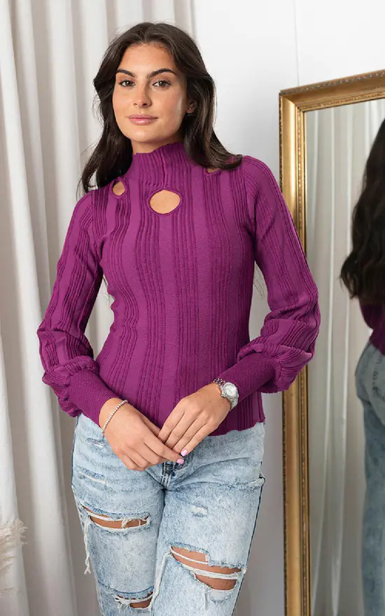The ikrush/Evelyn Knitted Tops with Cut Out Detail is the perfect top for any occasion! Made from a soft and comfortable material, it is perfect for everyday wear. The cut outs detail gives it a stylish edge, while the fitted design ensures you look great no matter what you pair it with!