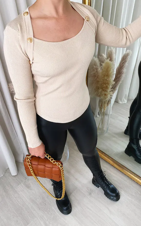 Introducing the Halle Knitted Top with Buttons Details from ikrush. This figure-hugging top is crafted from a soft knitted fabric, and features an on-trend button detail for a touch of stylish flair. Whether you wear it with jeans or a skirt, this top is sure to turn heads.