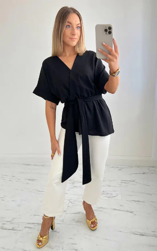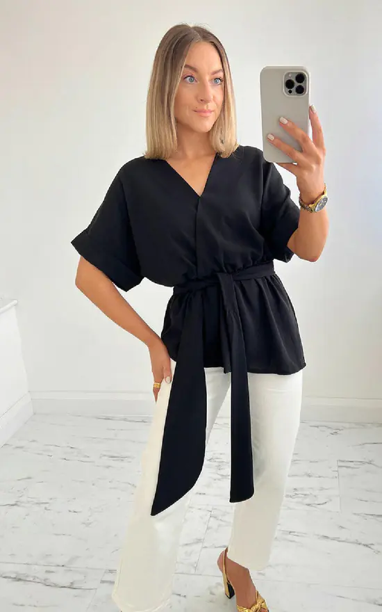 Looking for a stylish blouse that will keep you comfortable all day long? Look no further than the Shameela Wrap Blouse from ikrush. This gorgeous blouse features a wrap front and belt detail that create a feminine look, while the tie front ensures a perfect fit. Made from polyester, this blouse is sure to become your new go-to for any occasion.