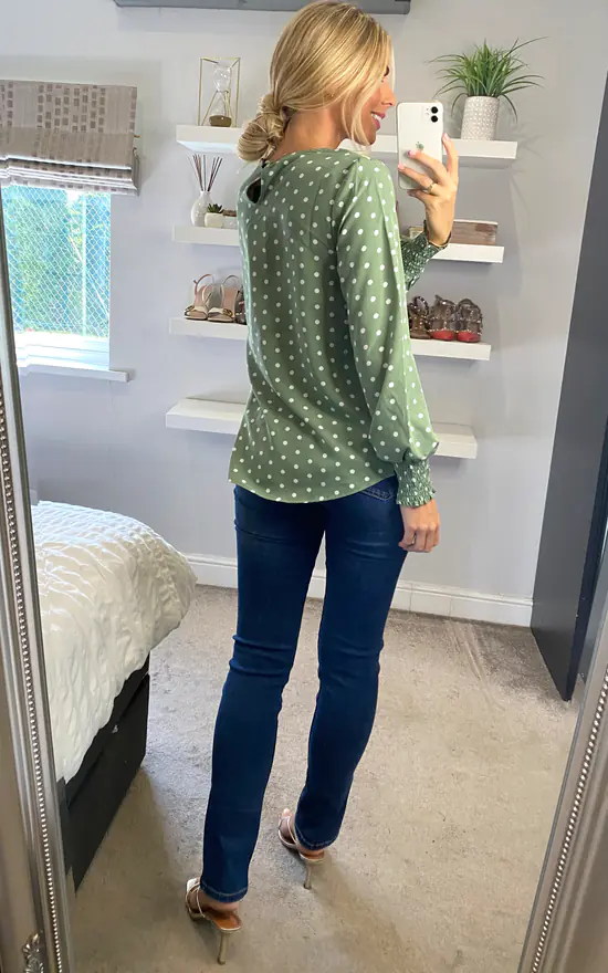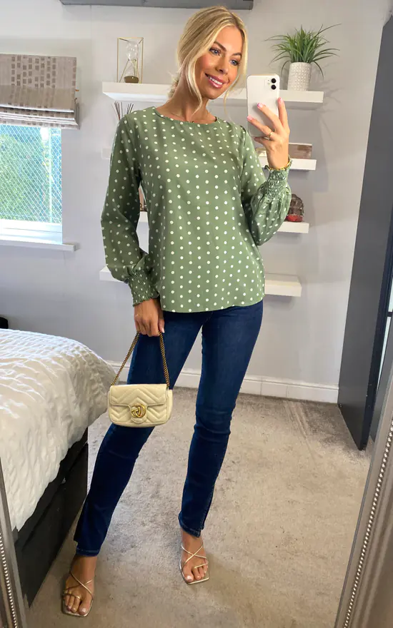 No wardrobe is complete without a classic polka dot blouse. With a round neck, long sleeves with shirred cuffs and a slim fit sitting at the hips. Pair with cropped tailored trousers and block heels for the office.