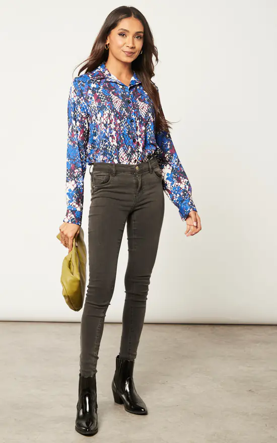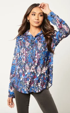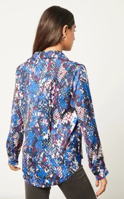 Long Sleeve Animal print (Snake print) Shirt in Multicolour Blue/Burgundy. Classic shirt in trendy and stylish bright print. Good for all occasions: work, casual drinks, going out, party, weekend walk, etc.
