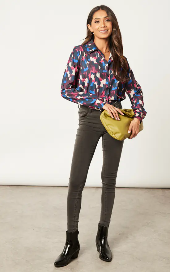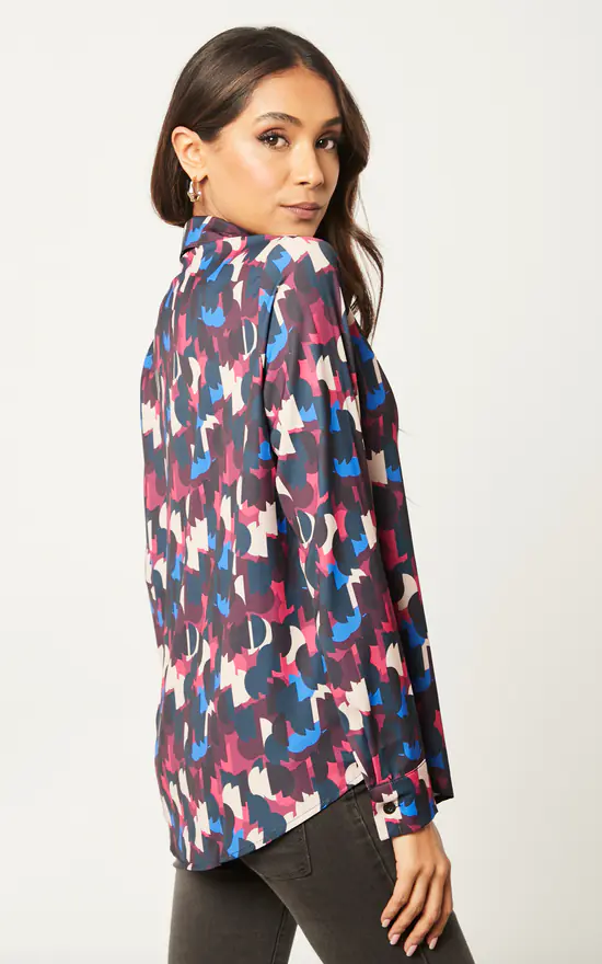 Long Sleeve Geometric print Shirt in Multicolour Fuchsia Pink/Blue. Classic shirt in trendy and stylish bright print. Good for all occasions: work, casual drinks, going out, party, weekend walk, etc.