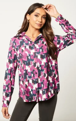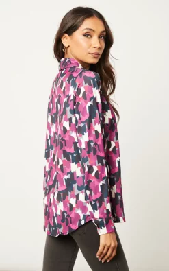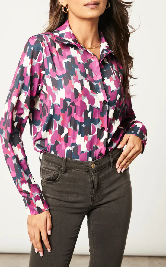 Long Sleeve Geometric print Shirt in Multicolour Fuchsia Pink/Purple. Classic shirt in trendy and stylish bright print. Good for all occasions: work, casual drinks, going out, party, weekend walk, etc.