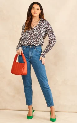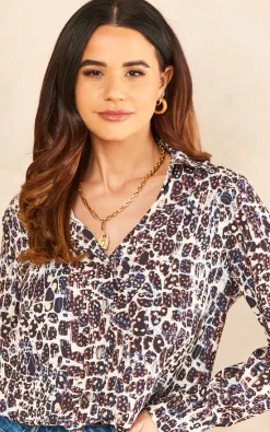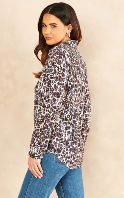 Long Sleeve Shirt in Stylish Multicolour Geometrical / Leopard (Animal) Print. Buttoned at the front.