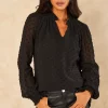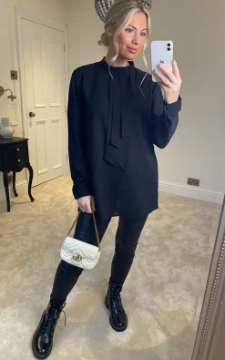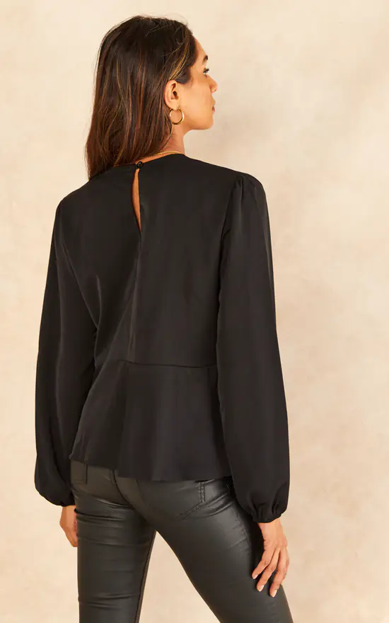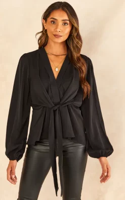 Long sleeve Wrap over style Knot Blouse in Black Colour. 2 variants of wearing: wrap at the front or at the back.