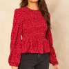 -Long sleeve, wrap, blouse, top, winter, autumn, occasion, polka dot print, geometrical print
