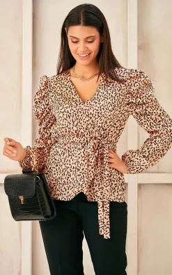 -Long sleeve, wrap, blouse, top, winter, autumn, occasion, polka dot print, geometrical print