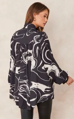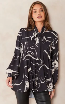 -Long sleeve, shirt, oversize, bow, abstract print, winter, autumn, occasion, going out, date night