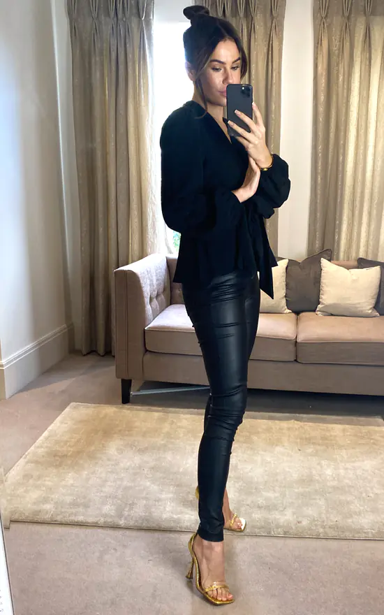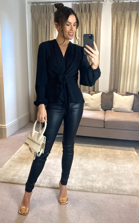 Long sleeve Wrap over style Blouse in Black Colour. 2 variants of wearing: wrap at the front or at the back.