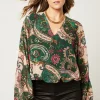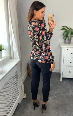 This top is all about the colour combo. See how the autumnal tones really stand out against the black fabric? Topped off with pretty balloon sleeves, deep cuffs and keyhole detail at the neck, it looks so smart and stylish. Team this top with an A-line skirt to jazz up your office wear, or go with denim and boots to elevate your everyday style.