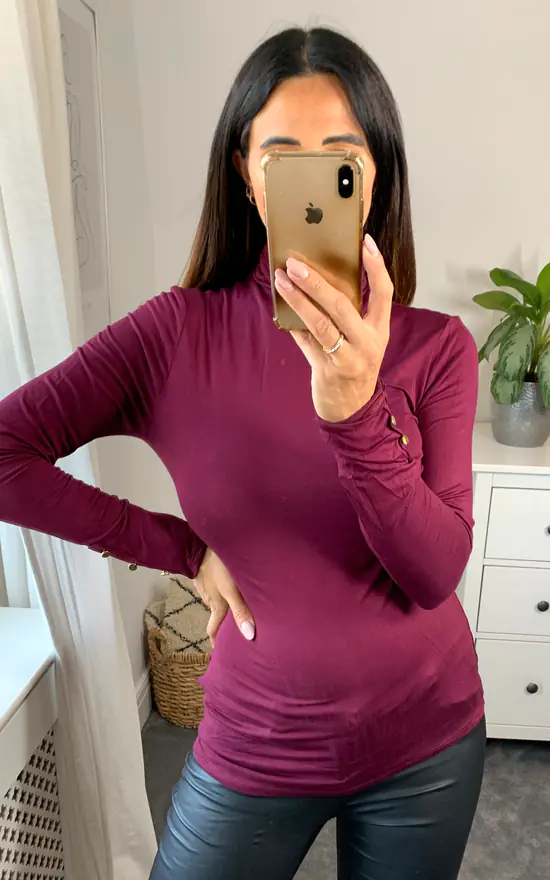 You canβt go wrong with a classic long-sleeved Berry roll neck, but weβve made ours even more outstanding. With pretty buttons on the sleeve, and crafted from sustainable, super soft fabric, it looks good, feels good and does good too. The only question is, will you choose ochre, orange, berry, black or winter white?