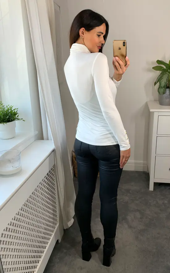 You canβt go wrong with a classic long-sleeved Winter White roll neck, but weβve made ours even more outstanding. With pretty buttons on the sleeve, and crafted from sustainable, super soft fabric, it looks good, feels good and does good too. The only question is, will you choose ochre, orange, berry, black or winter white?