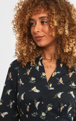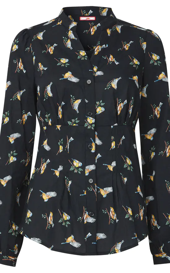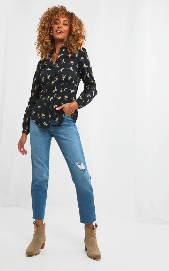 This Stunning V-neck blouse is just what your autumn wardrobeβs been looking for. Smart and sophisticated, it combines gorgeous seasonal colours with a remarkable bird print, creating a real stand out style. We love how the puffed sleeves and pleated under bust add a lovely feminine touch too.
