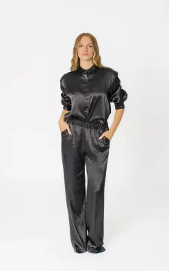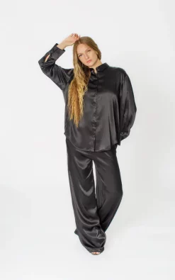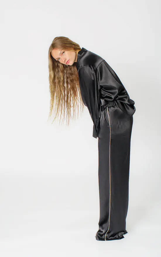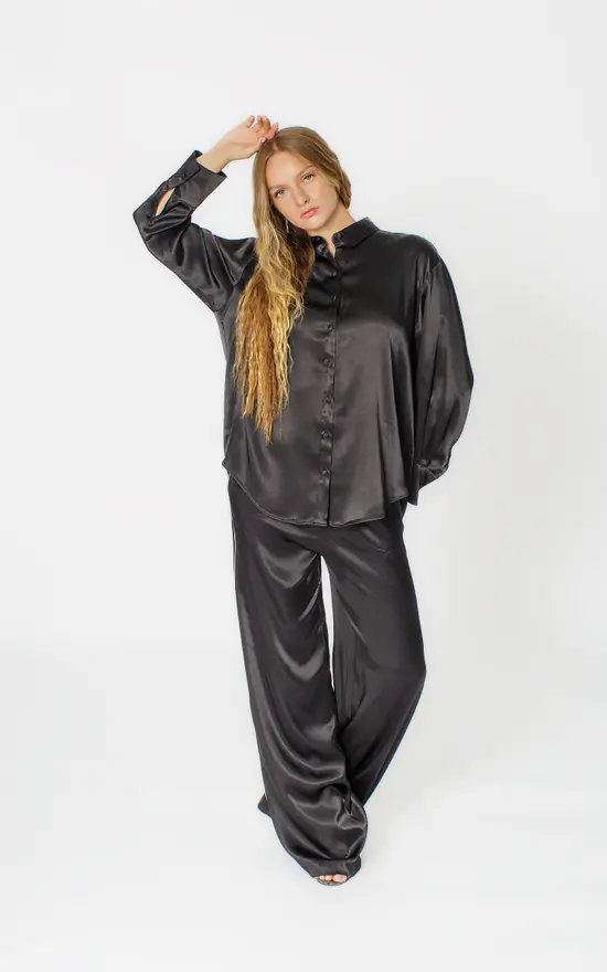 This shirt is timeless, a wardrobe staple for every season. It’s cut from fluid black satin and is perfect for all occasion. Fits large to size, so take one size smaller than normal for a fitted look.