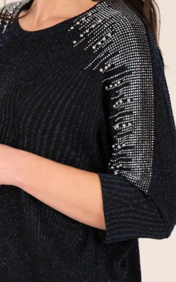 Keep it classy with this stunning diamante jersey top. Crafted in a lightweight material for comfort and finished with stunning sparkles that are sure to turn heads, this long sleeve top with flattering round neckline will be a staple in your festive wardrobe. Length 66cm.