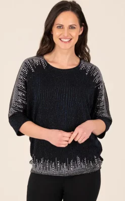 Keep it classy with this stunning diamante jersey top. Crafted in a lightweight material for comfort and finished with stunning sparkles that are sure to turn heads, this long sleeve top with flattering round neckline will be a staple in your festive wardrobe. Length 66cm.