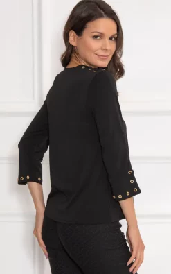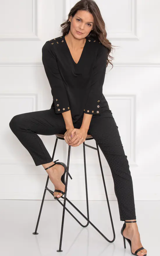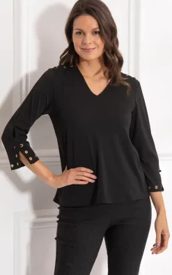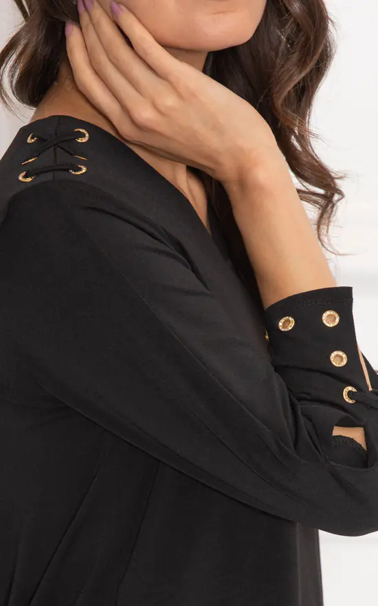 Look no further for the perfect casual top. Crafted with three quarter sleeves, a flattering v neckline and side tie detailing to the shoulders, this will be your new go to blouse. Length 62cm.