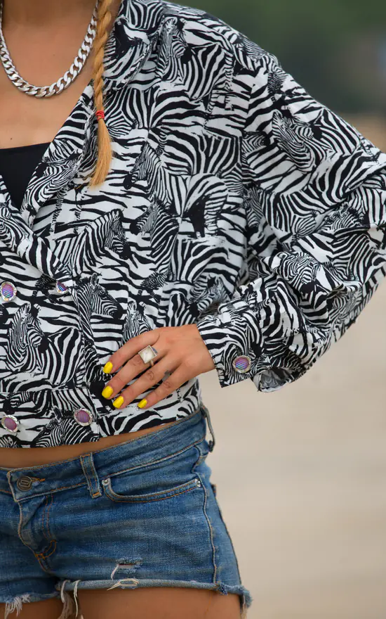 This 100% cotton printed double breasted festival shirt is single layer to be worn with swag and style. With bat-wing arms and fitted shape.