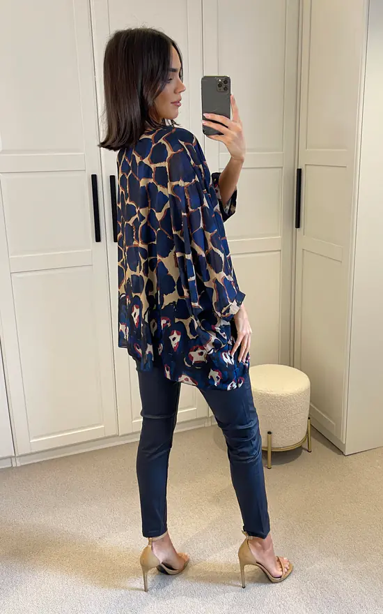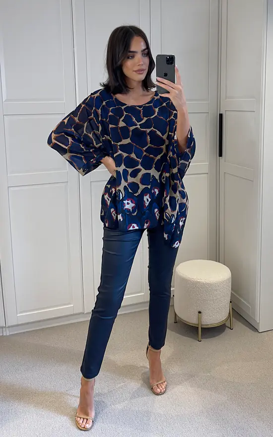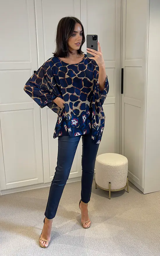 New season collection. A beautiful luxurious printed lottie top. Oversized, fully lined, cuff sleeves, crew neck. Soft floaty chiffon fabric. A best selling, flattering shape.