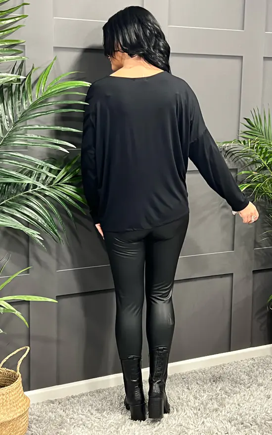This long sleeve super soft top is great on it’s own or used to layer too. The lovely tie detail at the front enables you to pull in or loosen as much as required. This top is a one size but would best fit from a size 8/10 up to an 18. This is the Black but there are more colours available.