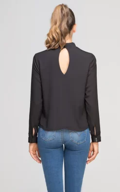 Blouse with a unique collar. Sexy cut at the back. Buttoned up cuffs. Made of lightweight fabric, pleasant to the touch.