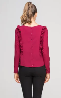 Blouse with a unique collar. Sexy cut at the back. Buttoned up cuffs. Made of lightweight fabric, pleasant to the touch.