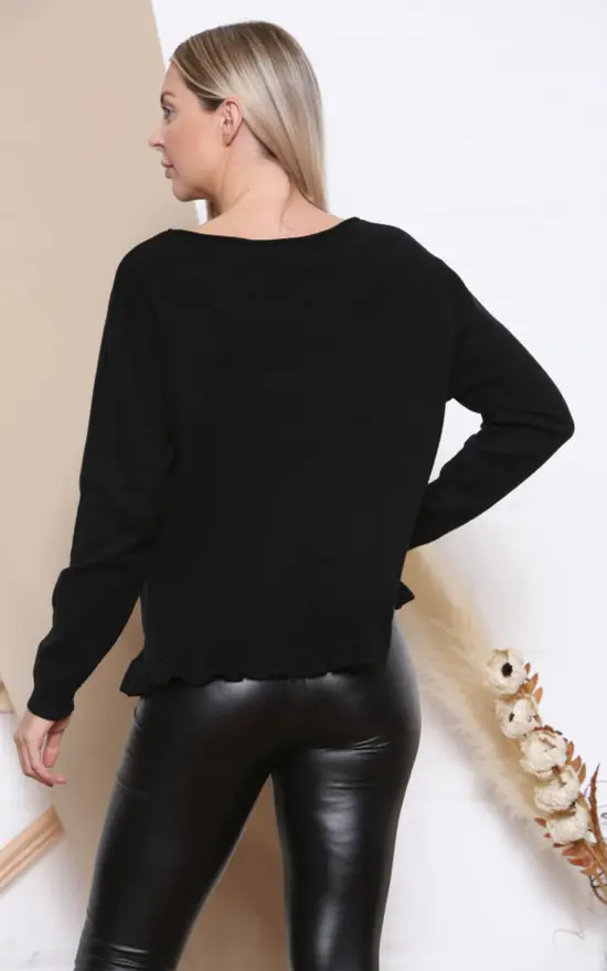 This smart jumper is perfect for work or casual occasions. With a stylish zig-zag pattern and ruffled hem for a smart and sublet design. Comfortable fit and long sleeves are perfect for cooler days.
