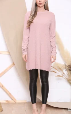 This smart top has a stylish textured pattern of dots and ribs in a diagonal striped pattern. Cuffs and hem have a wavy trim to add extra style to the top. Long sleeves and comfortable fit are perfect for winter.