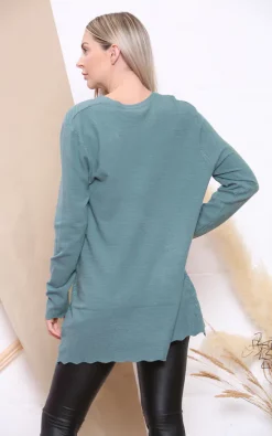 This smart top has a stylish textured pattern of dots and ribs in a diagonal striped pattern. Cuffs and hem have a wavy trim to add extra style to the top. Long sleeves and comfortable fit are perfect for winter.