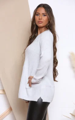 This sparkly jumper is a must have for winter, with long sleeves and a warm feel that’s great on cooler days. Made with lurex and metallic threads as well as small sequins to add loads of sparkle.