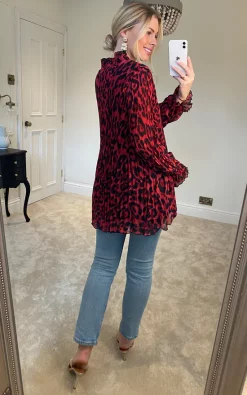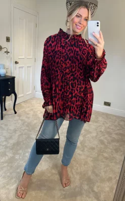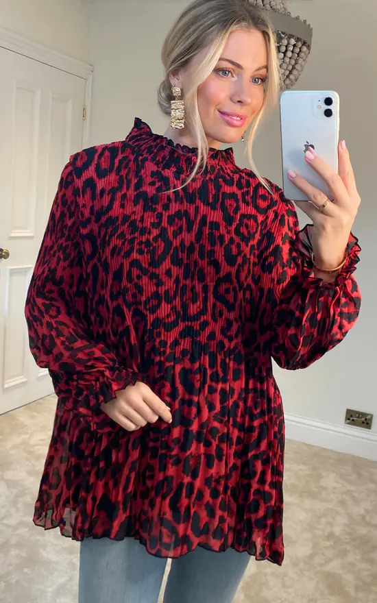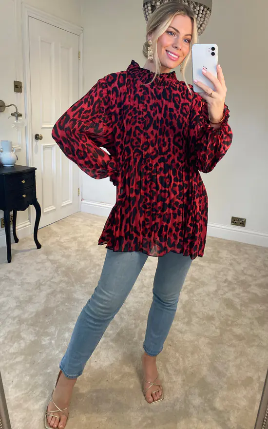Go from day to night in this ever versatile pleated top in red animal print. Team this with your favourite jeans and biker boots for a cool day look, then swap your boots for heels to party on into the night!