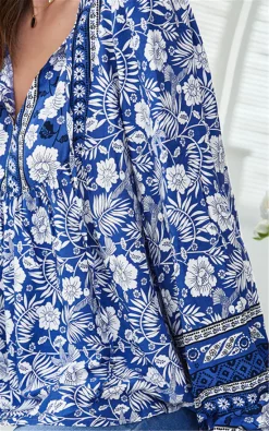 Beautiful long sleeve boho floral top in blue, perfect every day top for work, winter, or just casual mix and match
