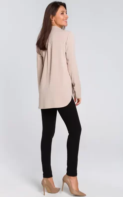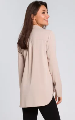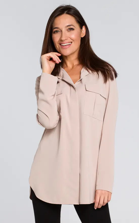 Flowy silhouette and lustrous sheen elevate chic in this button-down blouse with twin pockets at chest.