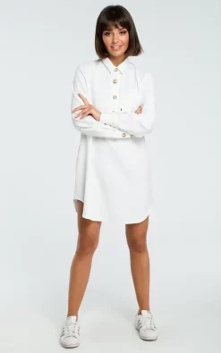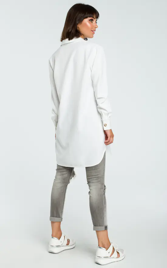Loose-fitting size and little above knee length of this lovely shirt create effortless casual style. It will look great worn as a mini dress on warmer days as well as paired with skinny jeans or leggings and pumps.