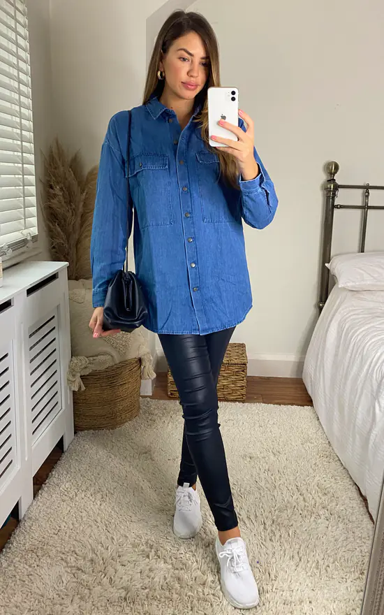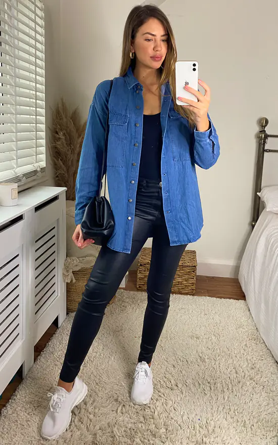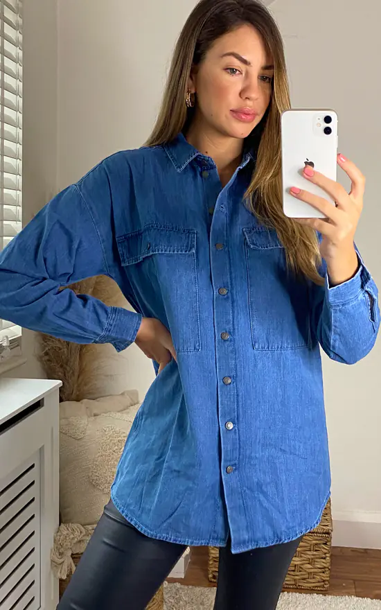 Lighter than a jacket, more versatile than a shirt – this medium blue denim shacket is the all-year layer that’s perfect for everyday wear.