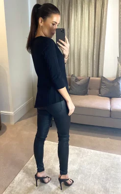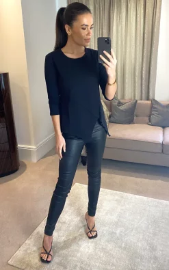 A must-have for your wardrobe! This 3/4 sleeve black top fits any casual day out.