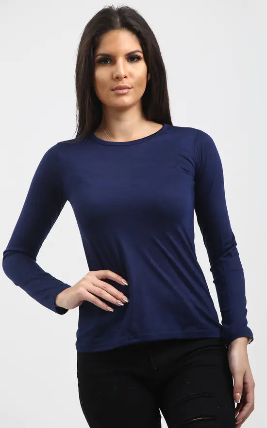 Look fierce with minimum effort in the Aria long sleeve Plain T Shirt In Navy . Team with jeans, ankle boots and bomber jacket to create the ultimate combo!